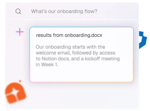 Ask anything from "What’s our onboarding flow?" to "Who’s handling this bug?"